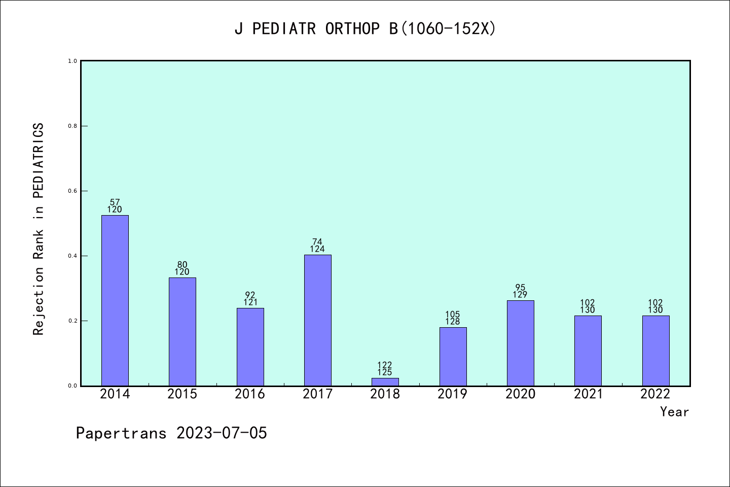 JOURNAL OF PEDIATRIC ORTHOPAEDICS-PART B拒稿率学科排名@SCIE儿科