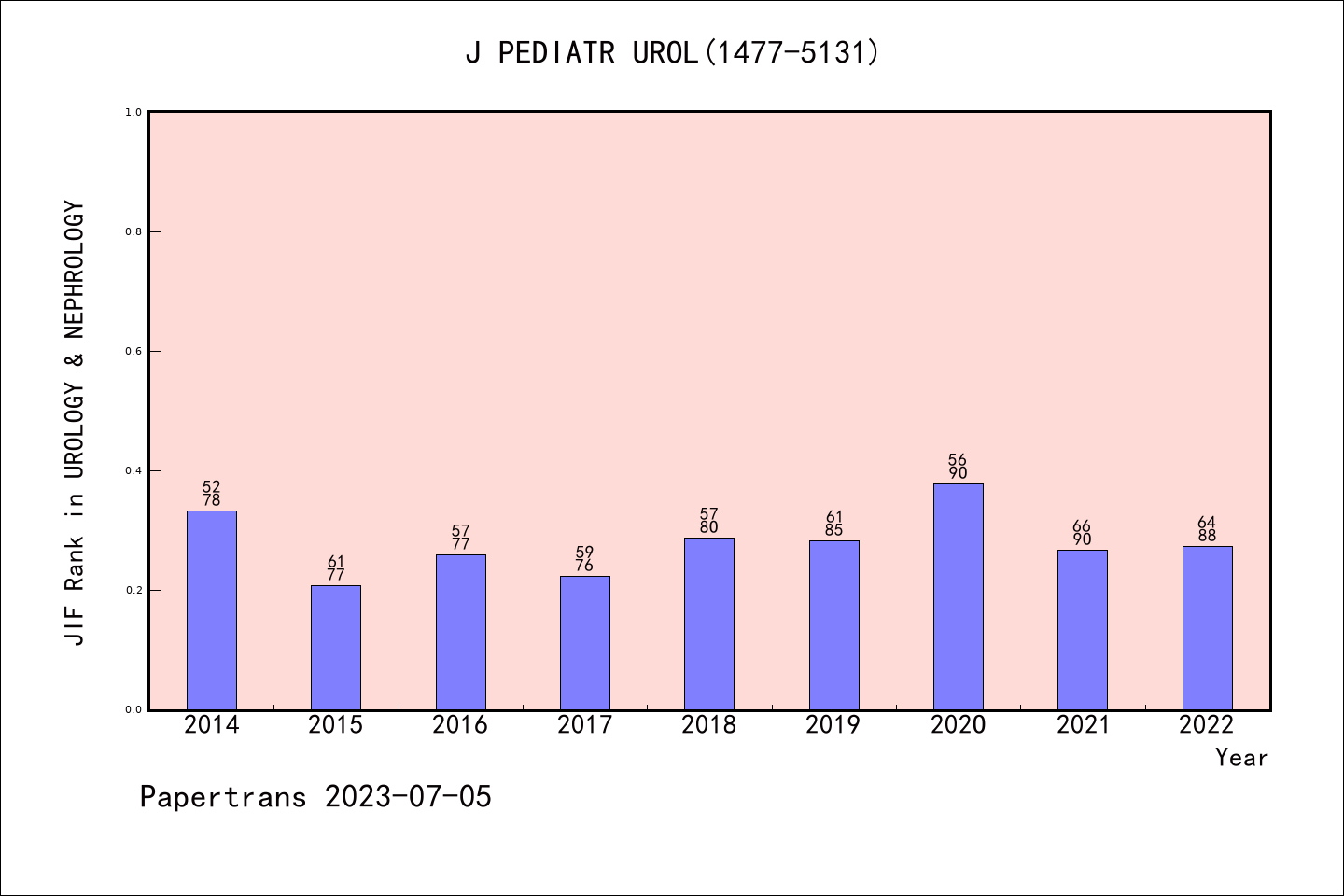 Journal of Pediatric Urology派博系数(Pindex)学科排名@SCIE泌尿肾脏学