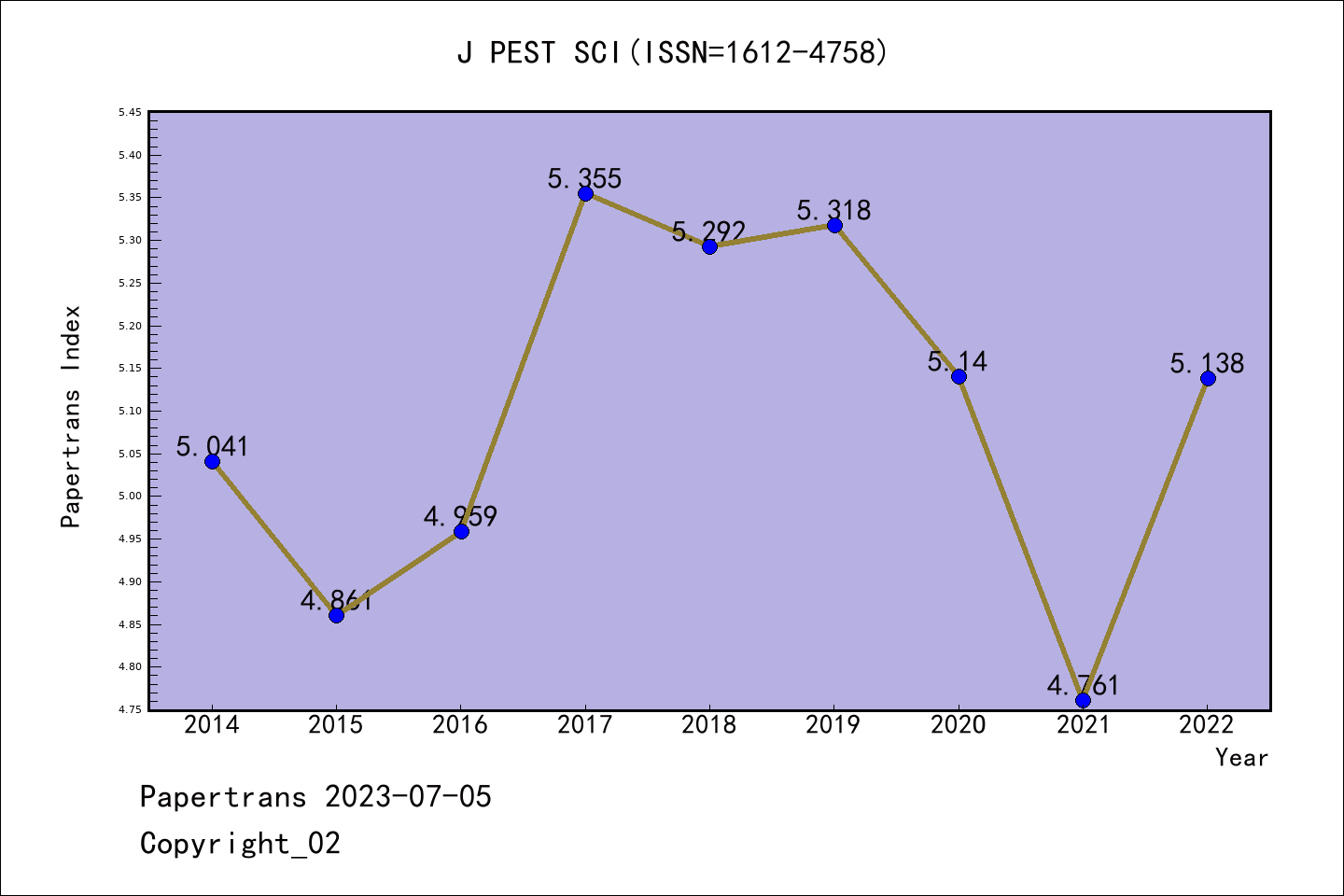 SCIE期刊JOURNAL OF PEST SCIENCE历年派博系数(Pindex)