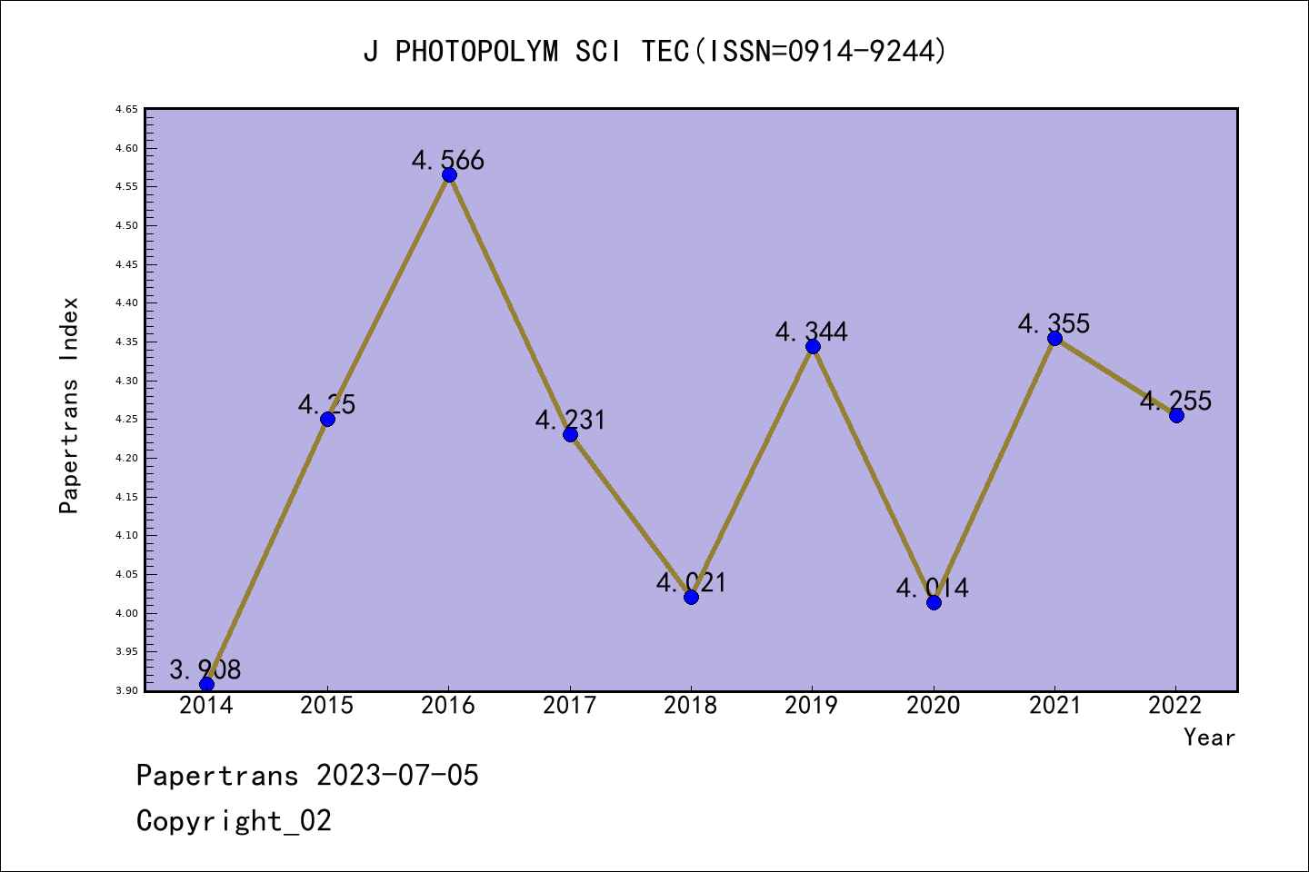 SCIE期刊JOURNAL OF PHOTOPOLYMER SCIENCE AND TECHNOLOGY历年派博系数(Pindex)