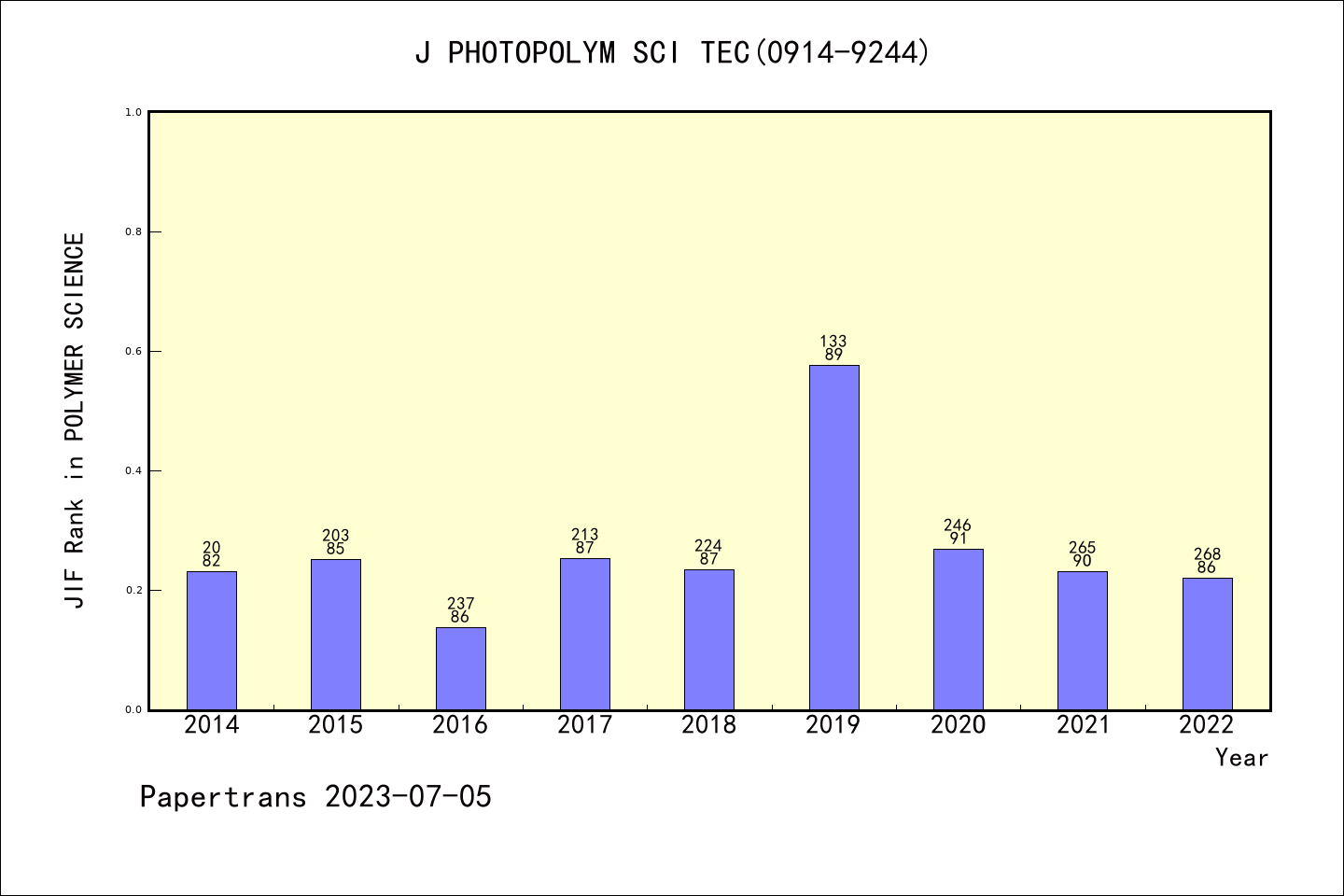 J PHOTOPOLYM SCI TEC图表质量排名@SCIE聚合物科学