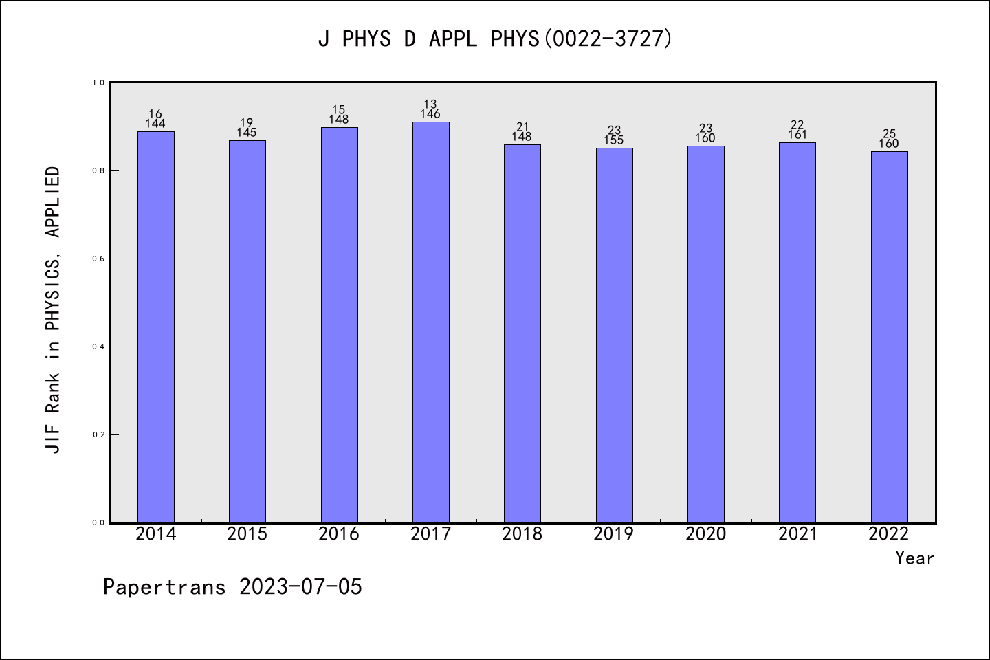 JOURNAL OF PHYSICS D-APPLIED PHYSICS派博系数(Pindex)学科排名@SCIE应用物理