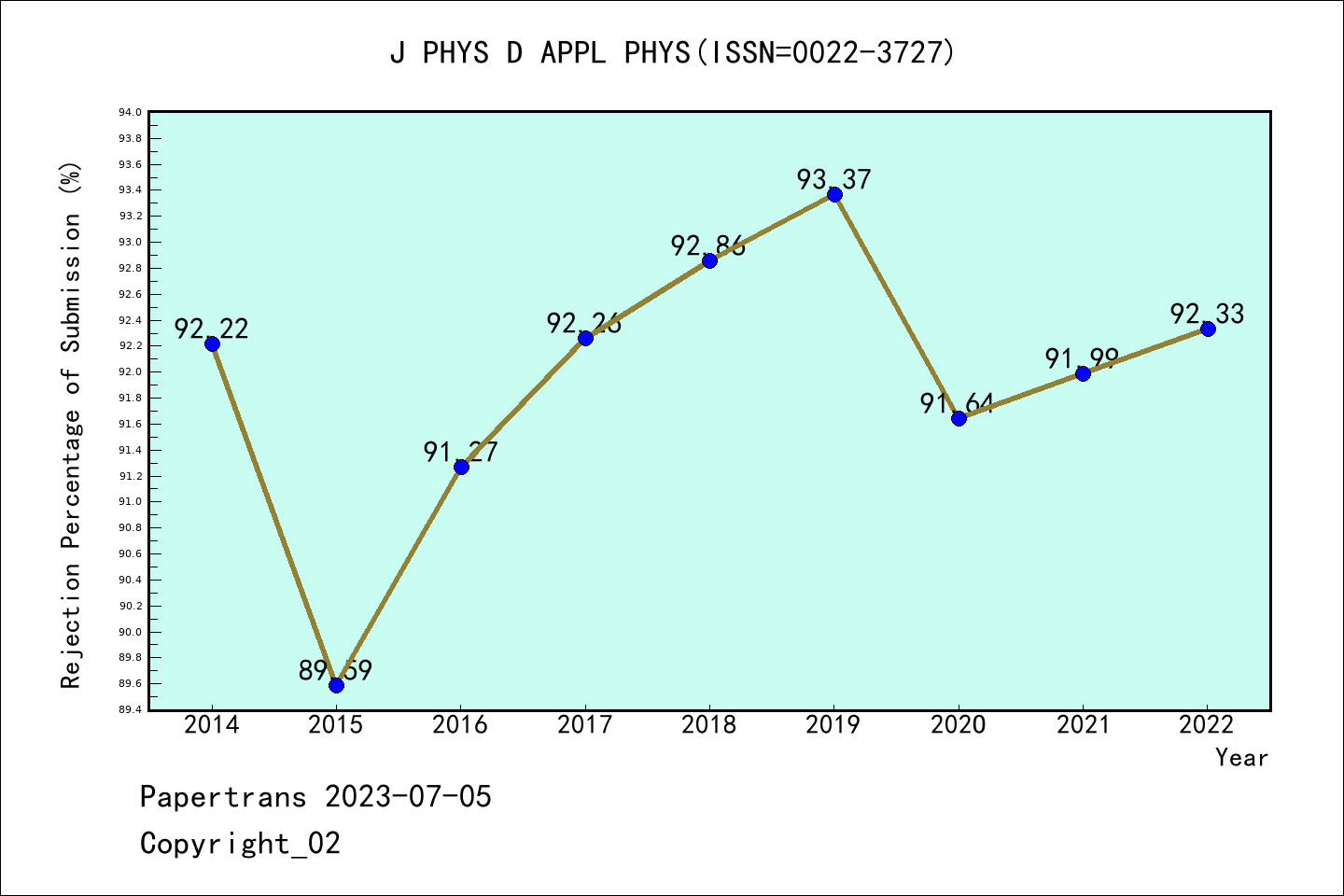 SCIE期刊JOURNAL OF PHYSICS D-APPLIED PHYSICS历年拒稿占比