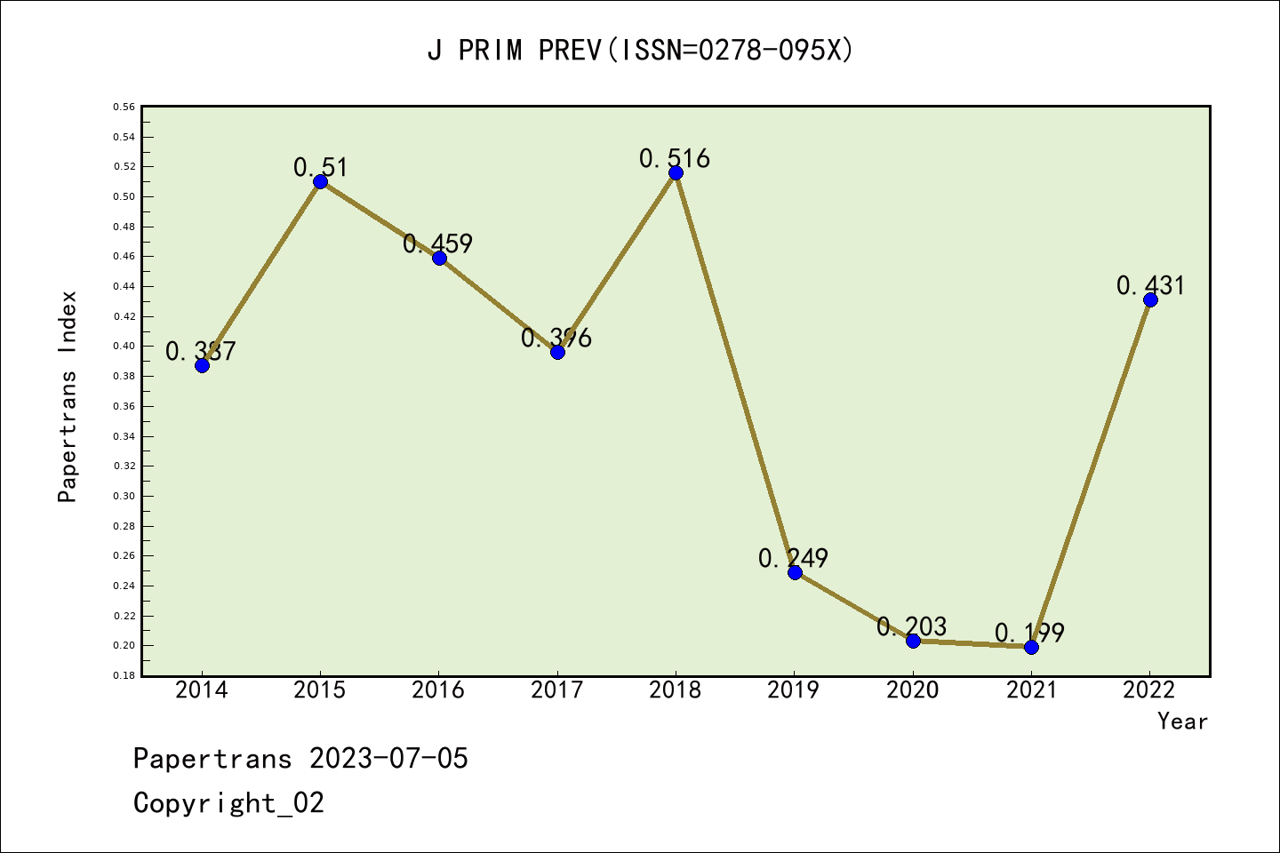 SSCI期刊Journal of Primary Prevention历年派博系数(Pindex)