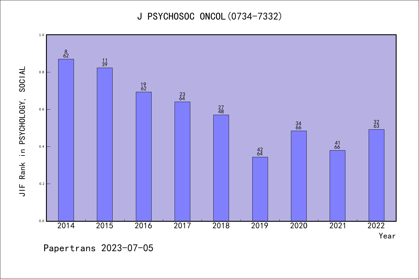 SSCI期刊JOURNAL OF PSYCHOSOCIAL ONCOLOGY历年派博系数(Pindex)