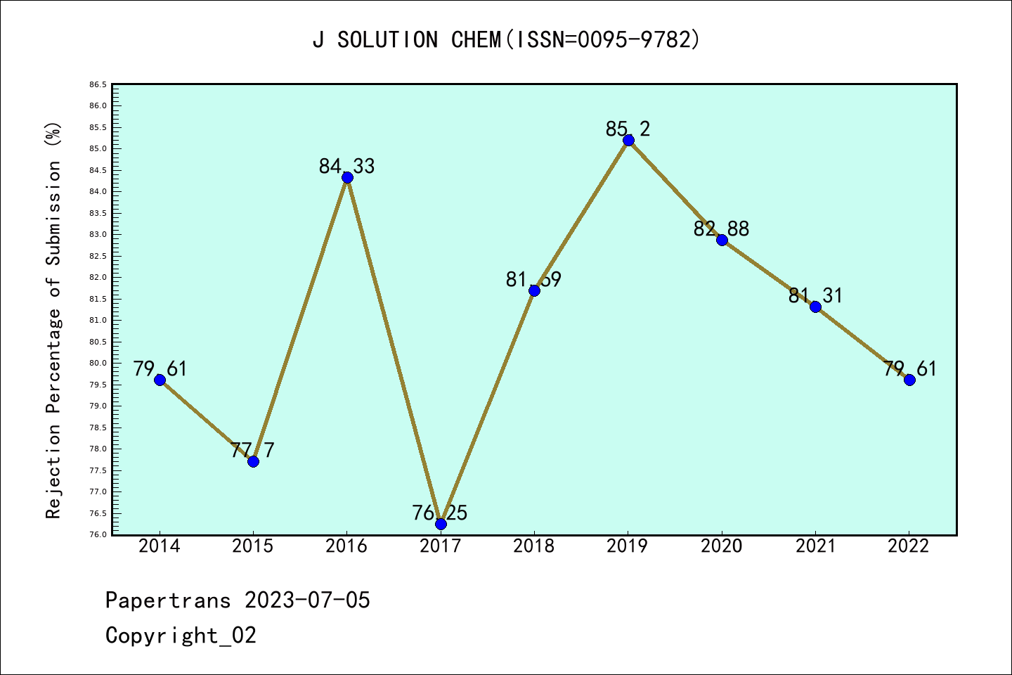 SCIE期刊JOURNAL OF SOLUTION CHEMISTRY历年拒稿占比