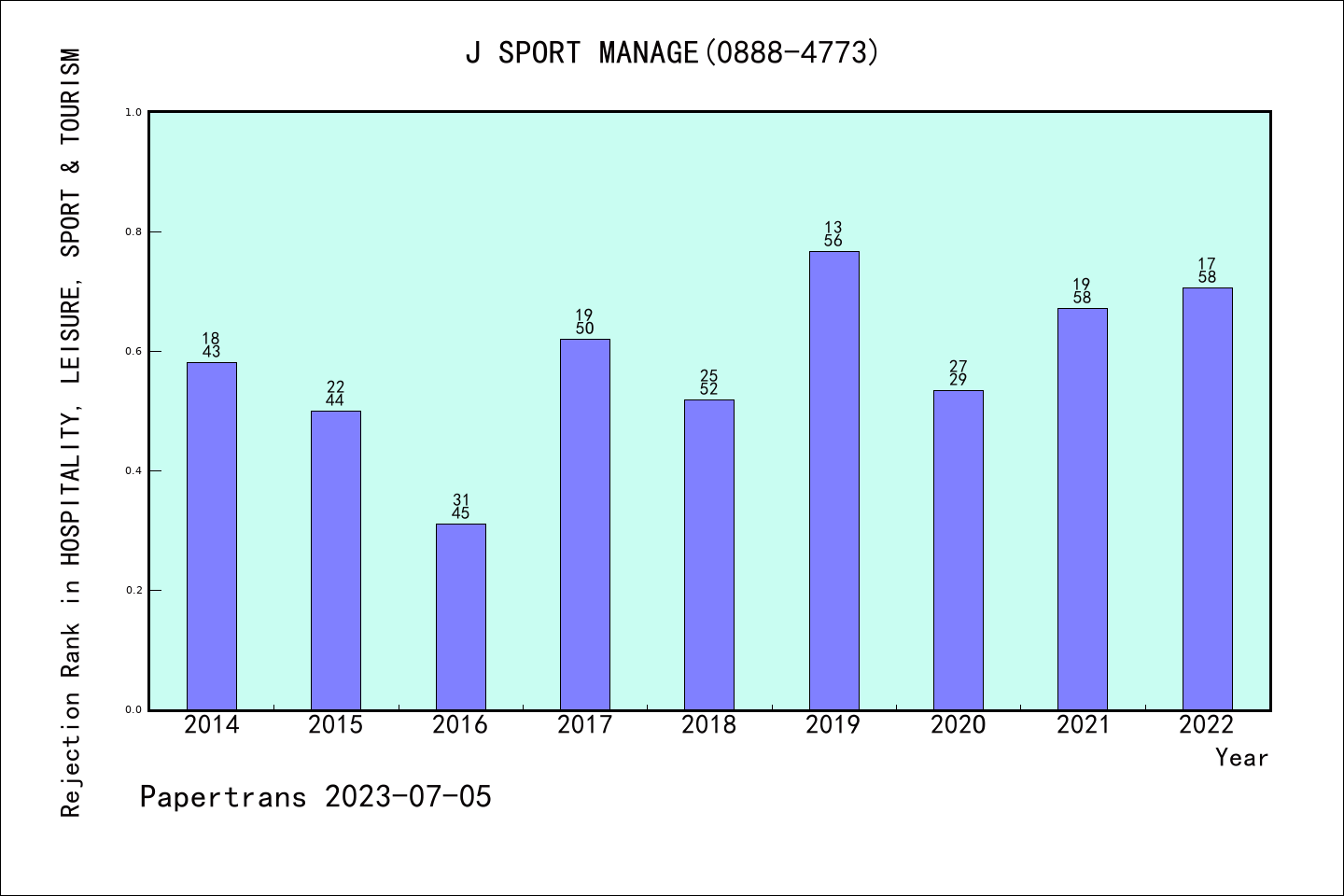 SSCI期刊JOURNAL OF SPORT MANAGEMENT历年拒稿占比