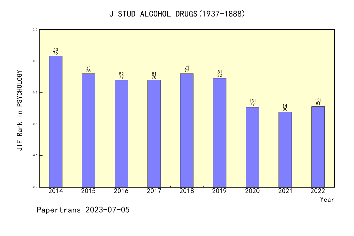 J STUD ALCOHOL DRUGS图表质量排名@SCIE心理学