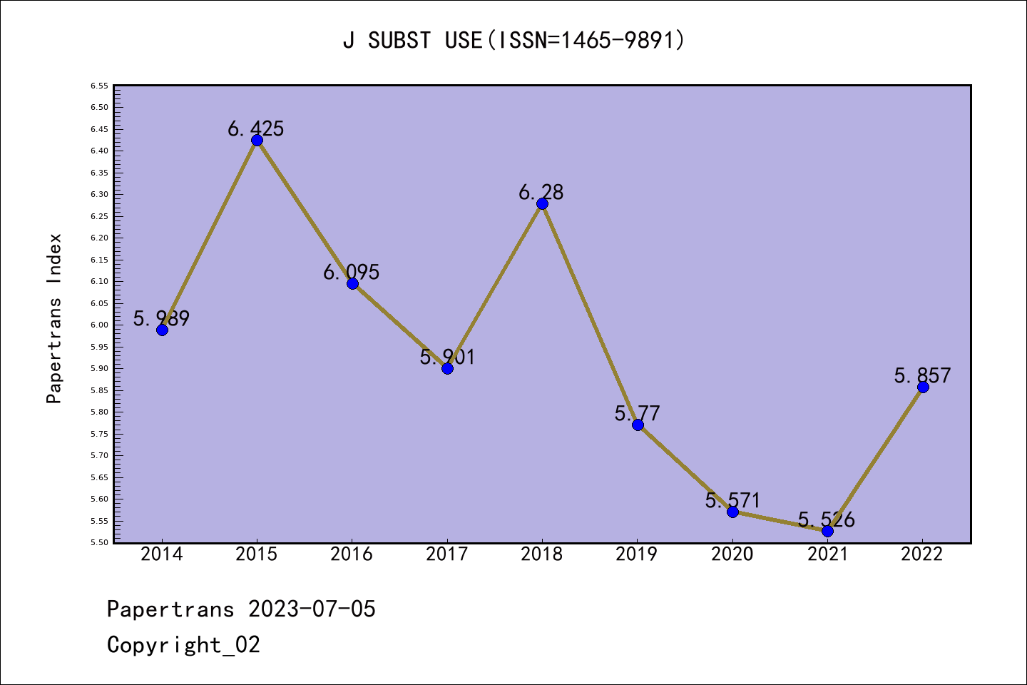 SSCI期刊Journal of Substance Use历年派博系数(Pindex)