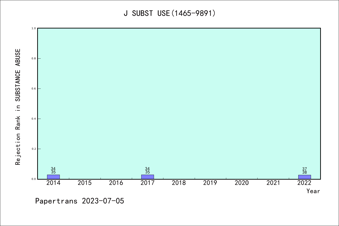 SSCI期刊Journal of Substance Use历年拒稿占比