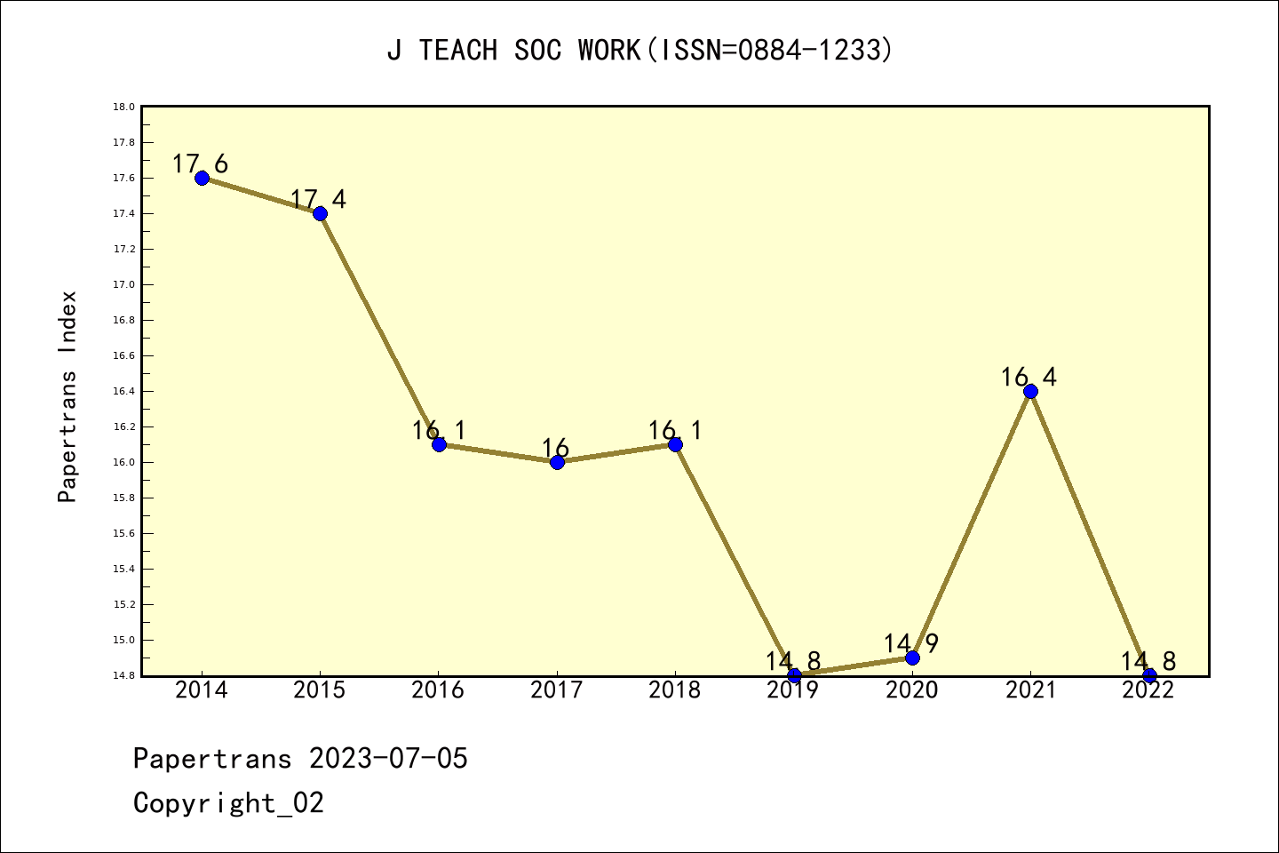 ESCI期刊Journal of Teaching in Social Work历年派博系数(Pindex)