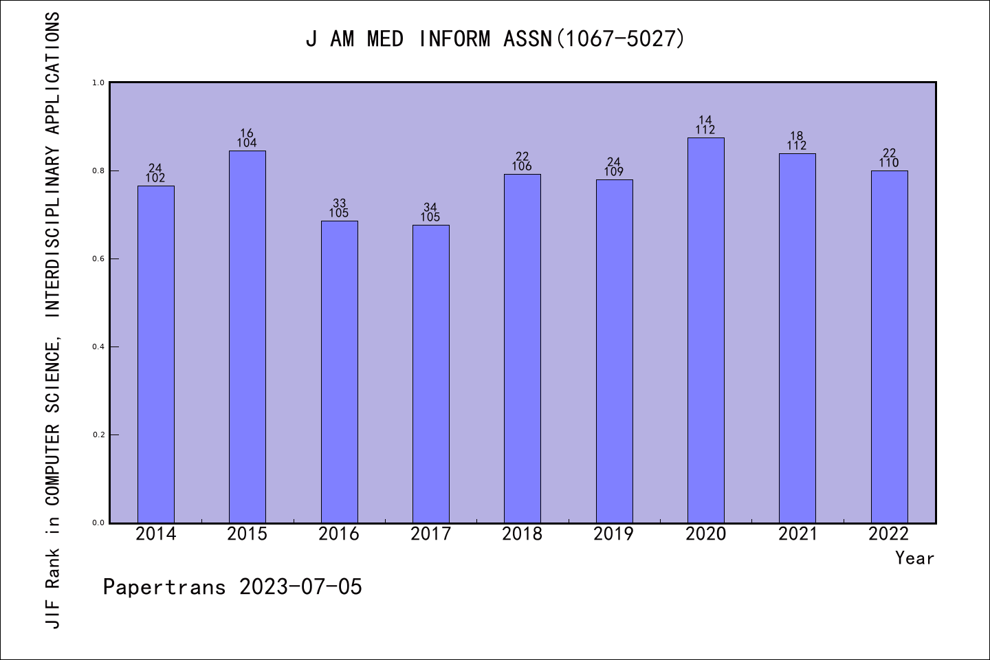 JOURNAL OF THE AMERICAN MEDICAL INFORMATICS ASSOCIATION拒稿率学科排名@SCIE计算机跨学科应用
