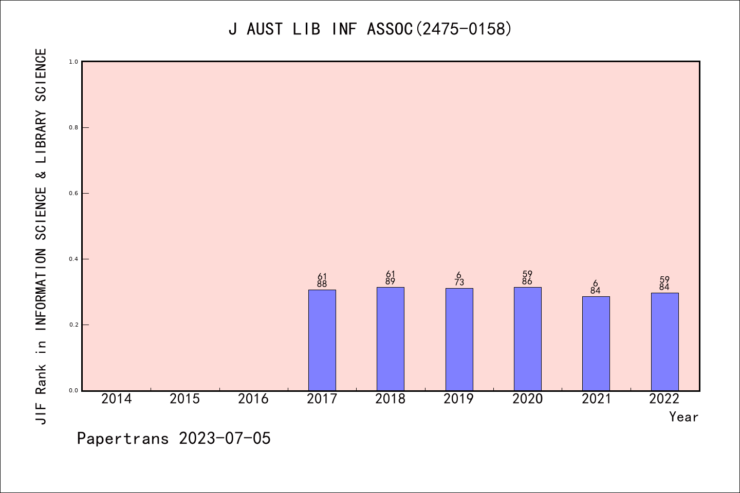 J AUST LIB INF ASSOC图表质量排名@SSCI情报学与图书馆学