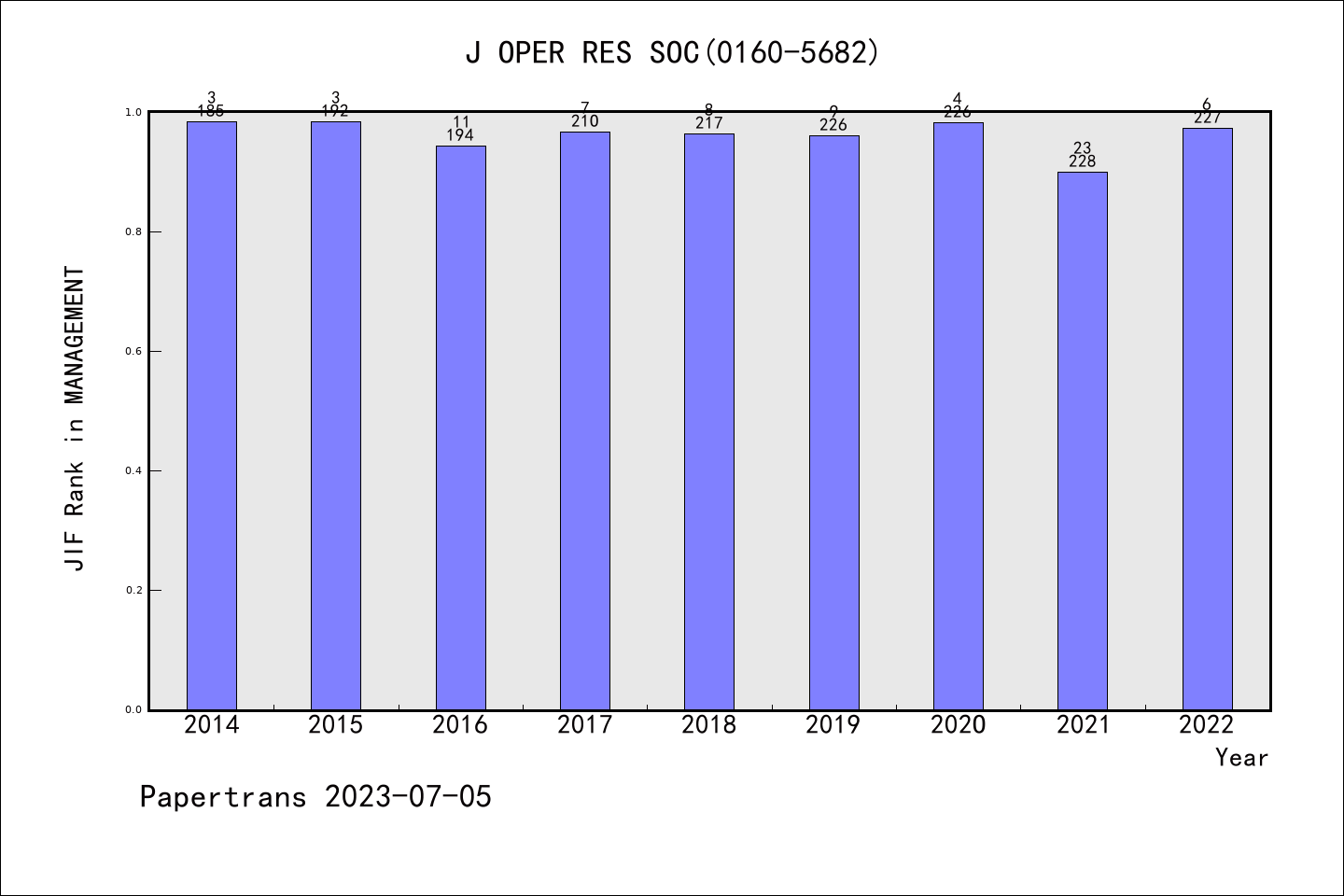 JOURNAL OF THE OPERATIONAL RESEARCH SOCIETY派博系数(Pindex)学科排名@SSCI管理