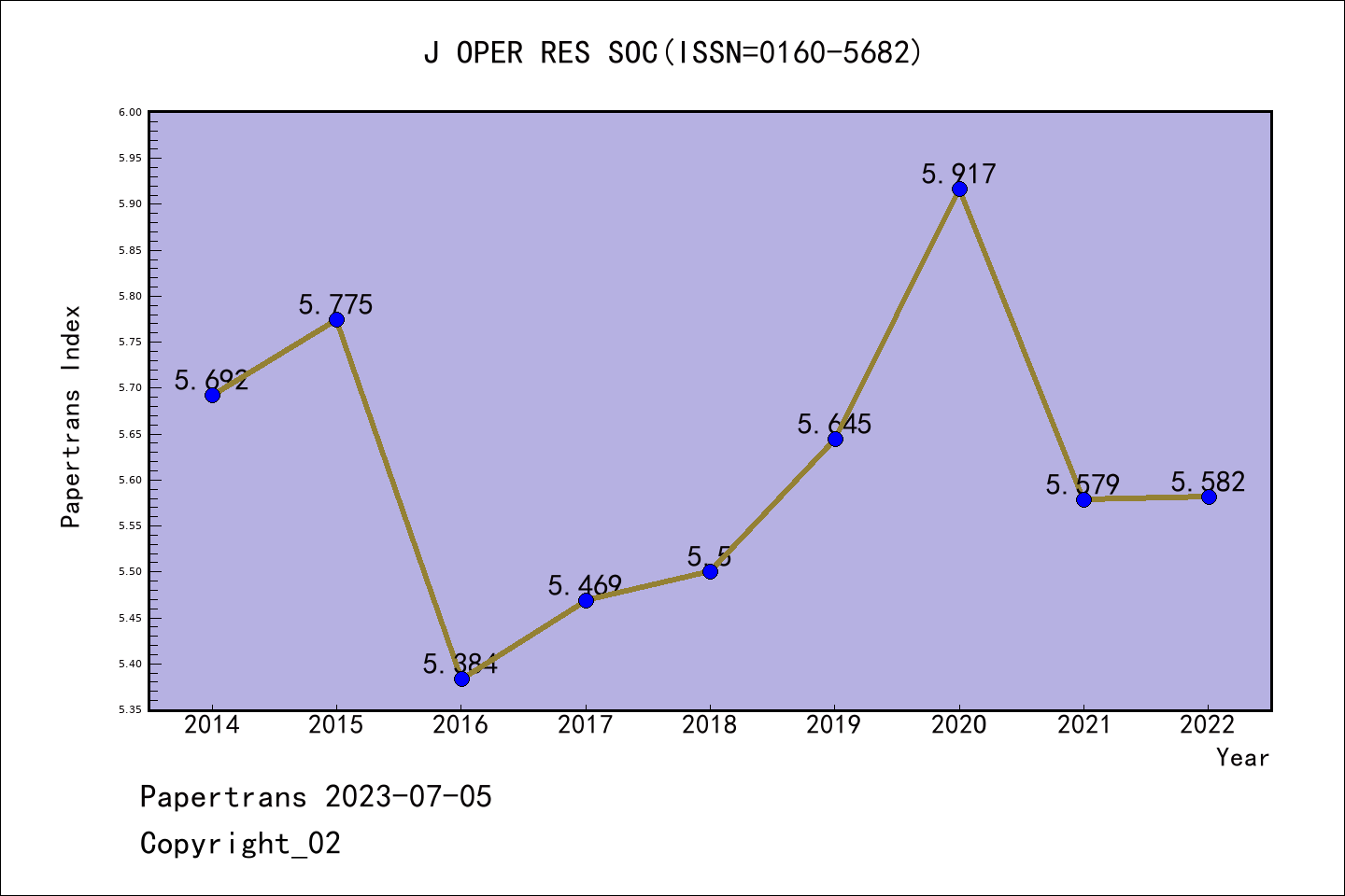 SSCI期刊JOURNAL OF THE OPERATIONAL RESEARCH SOCIETY历年派博系数(Pindex)