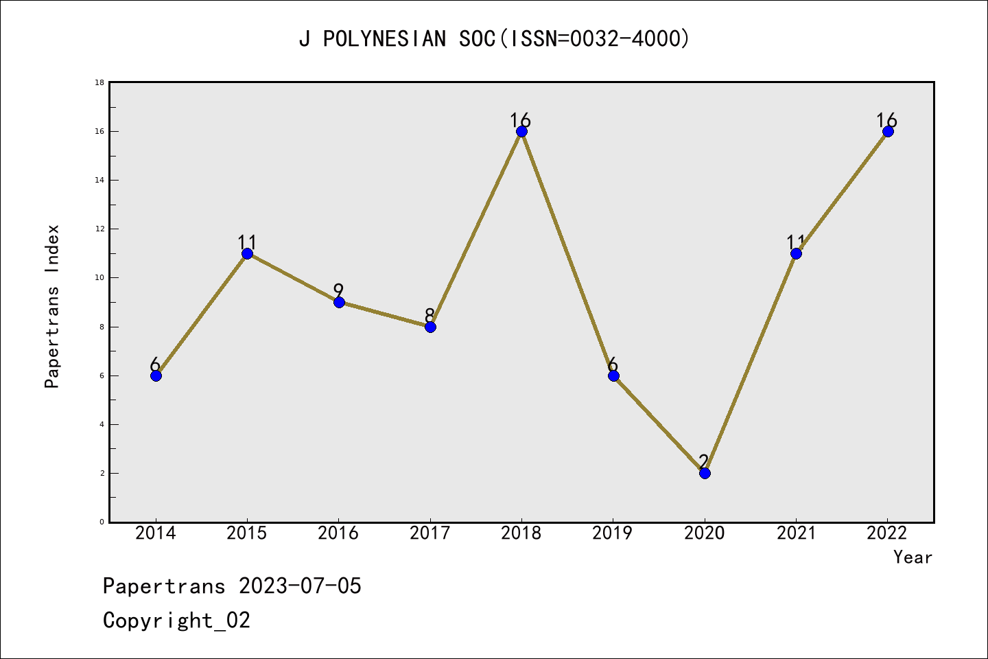 SSCI期刊JOURNAL OF THE POLYNESIAN SOCIETY历年派博系数(Pindex)