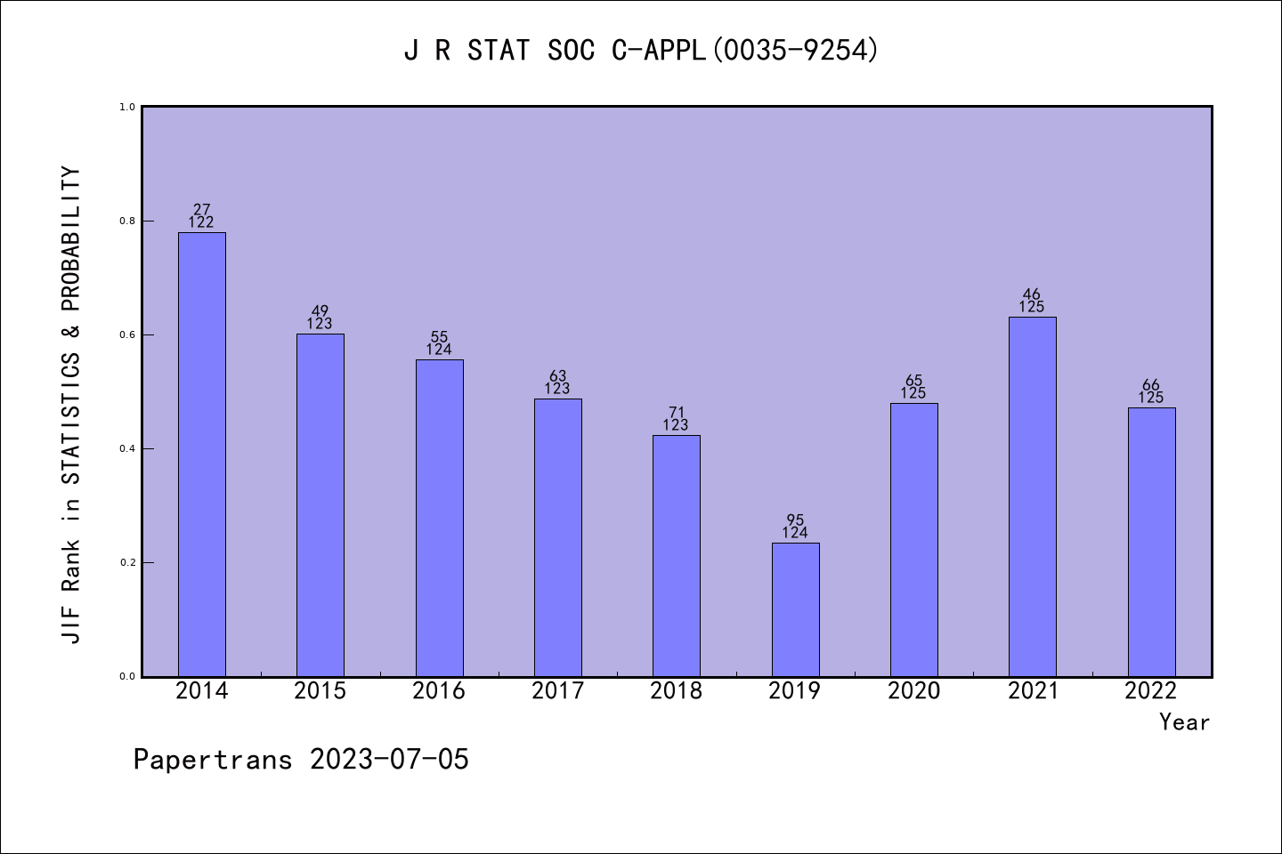 SCIE期刊JOURNAL OF THE ROYAL STATISTICAL SOCIETY SERIES C-APPLIED STATISTICS历年派博系数(Pindex)