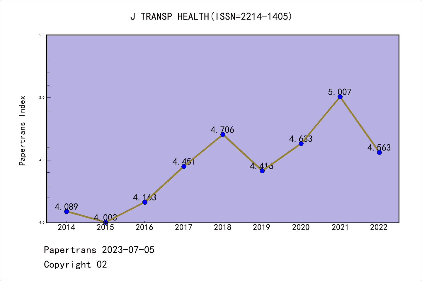 SSCI期刊Journal of Transport & Health历年派博系数(Pindex)
