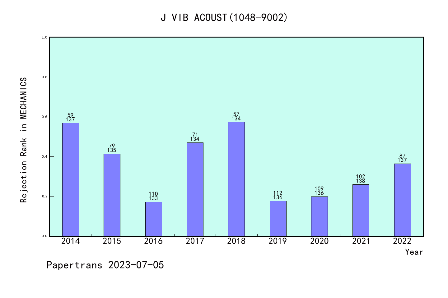JOURNAL OF VIBRATION AND ACOUSTICS-TRANSACTIONS OF THE ASME拒稿率学科排名@SCIE力学