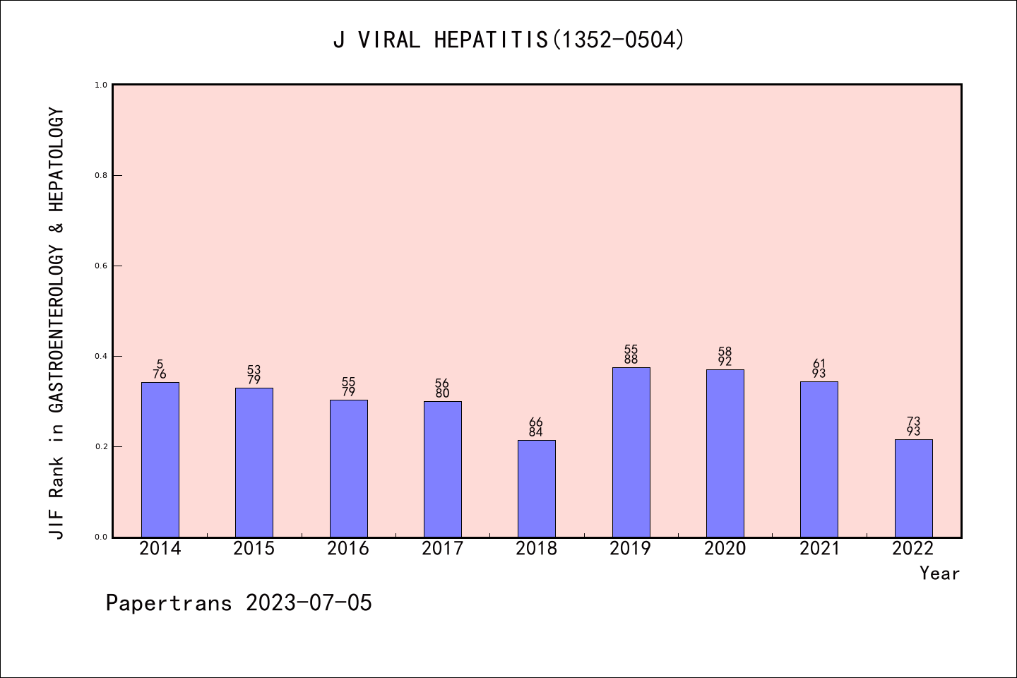 JOURNAL OF VIRAL HEPATITIS拒稿率学科排名@SCIE胃肠病与肝病