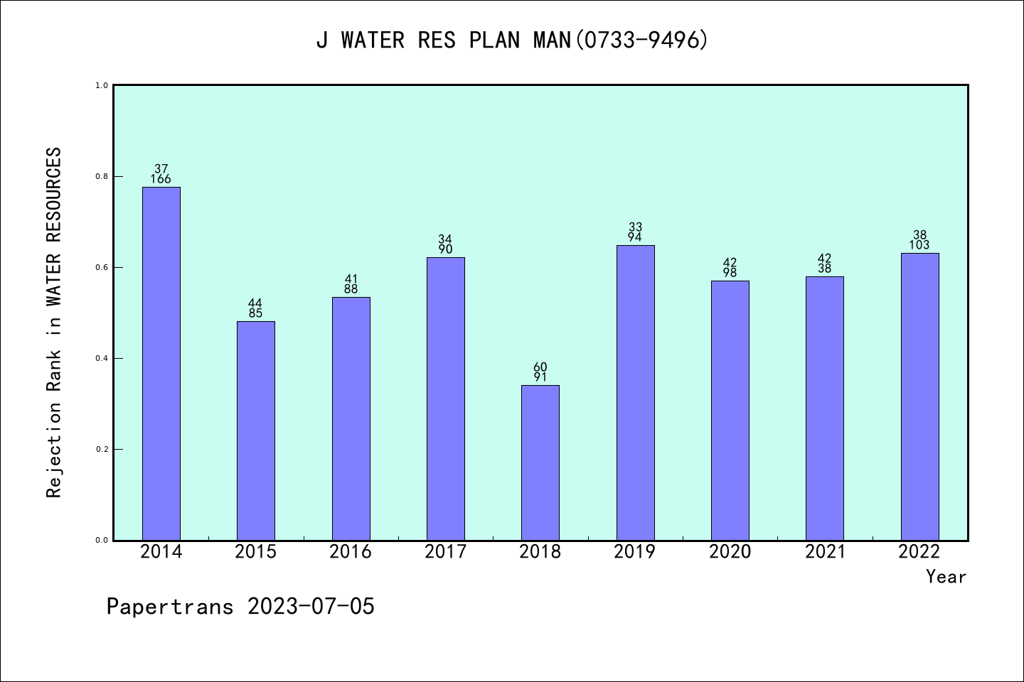 SCIE期刊JOURNAL OF WATER RESOURCES PLANNING AND MANAGEMENT历年拒稿占比