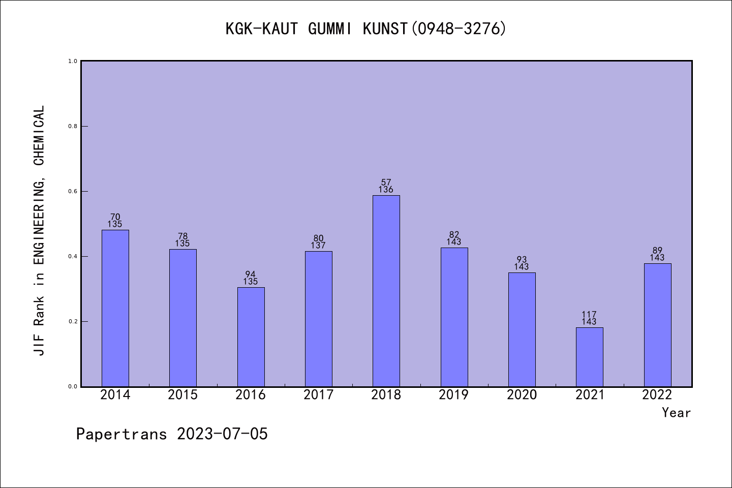 KGK-KAUT GUMMI KUNST图表质量排名@SCIE工程、化学