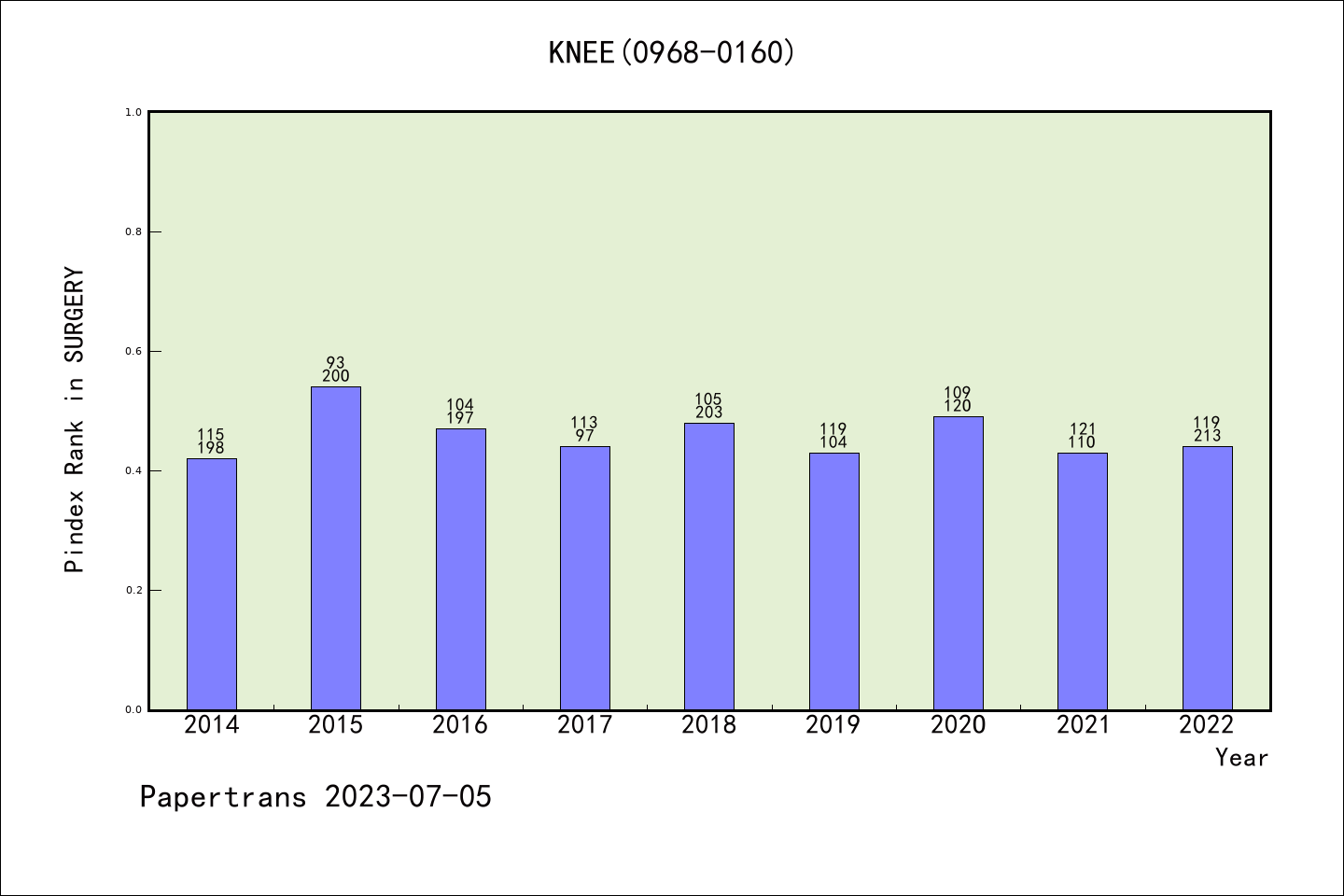 KNEE派博系数(Pindex)学科排名@SCIE外科手术