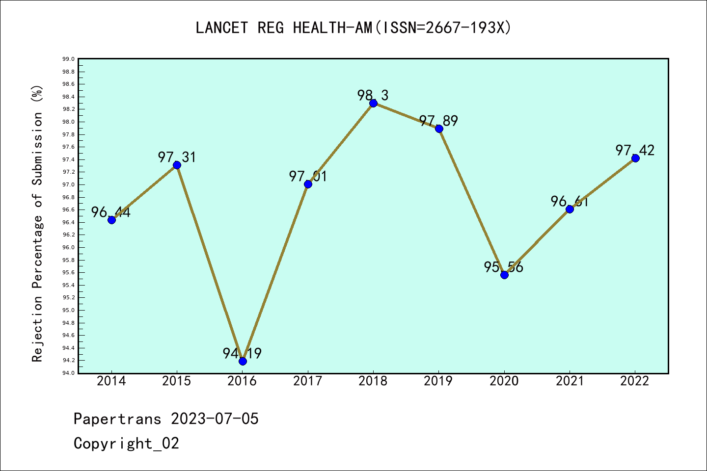 ESCI期刊Lancet Regional Health-Americas历年拒稿占比