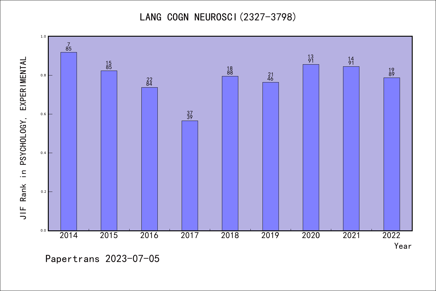 SSCI期刊Language Cognition and Neuroscience历年派博系数(Pindex)