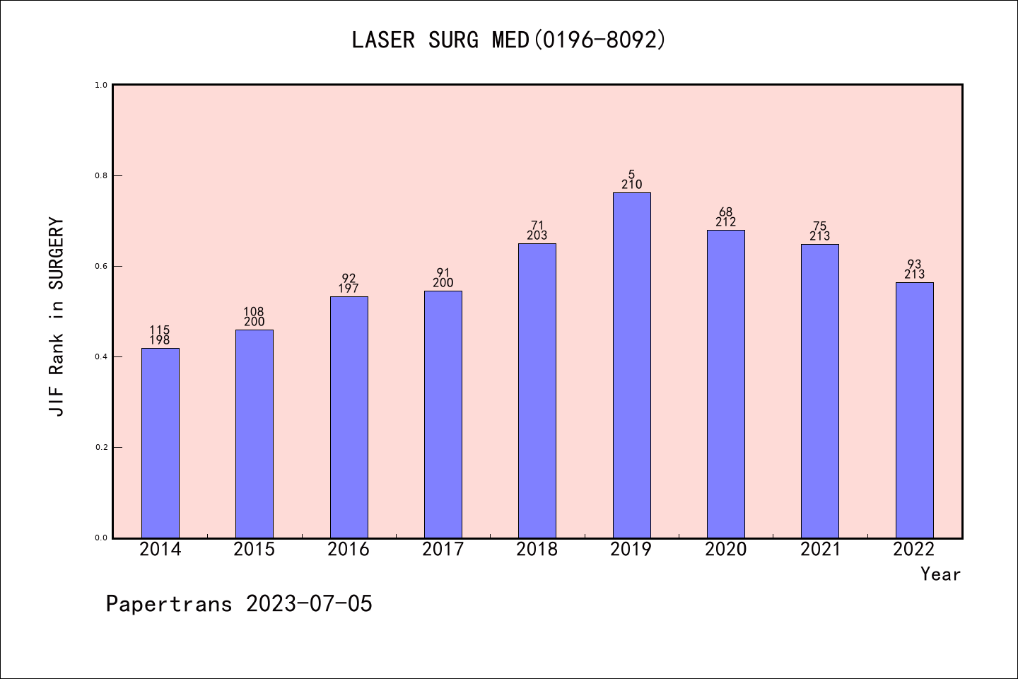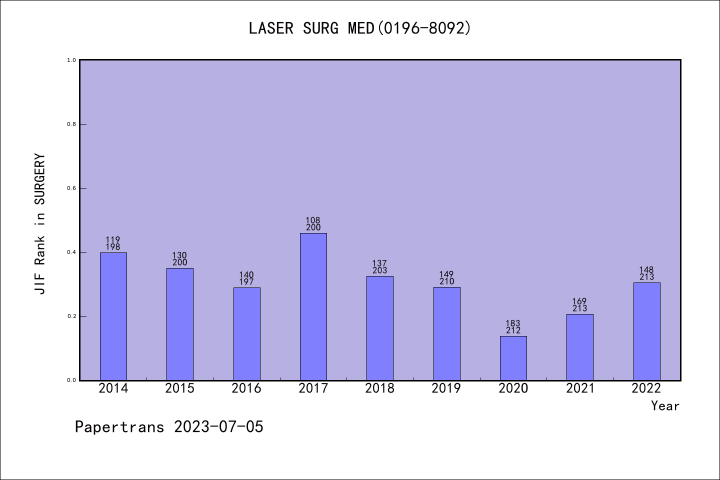 LASERS IN SURGERY AND MEDICINE派博系数(Pindex)学科排名@SCIE外科手术