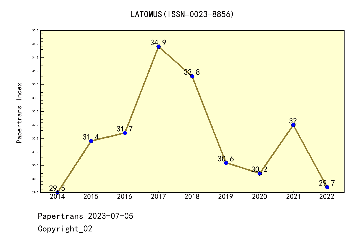 AHCI期刊LATOMUS历年派博系数(Pindex)