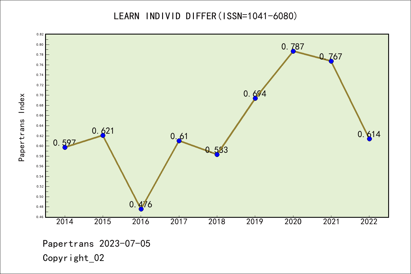 SSCI期刊LEARNING AND INDIVIDUAL DIFFERENCES历年派博系数(Pindex)
