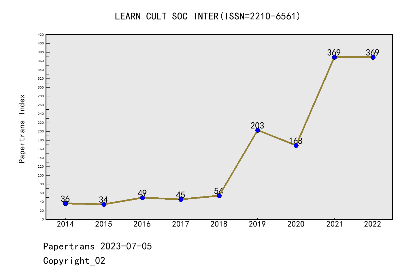 SSCI期刊Learning Culture and Social Interaction历年派博系数(Pindex)
