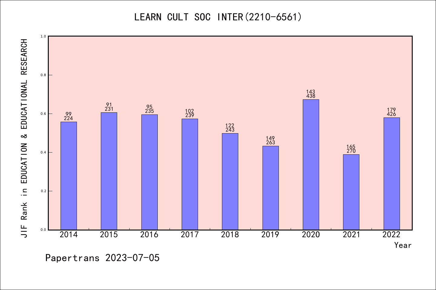 SSCI期刊Learning Culture and Social Interaction历年拒稿占比