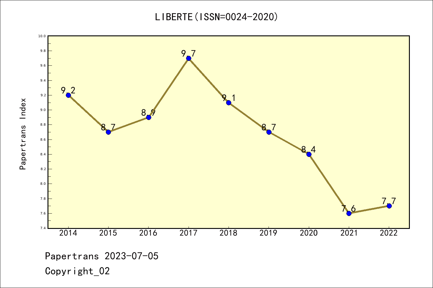 AHCI期刊LIBERTE历年派博系数(Pindex)