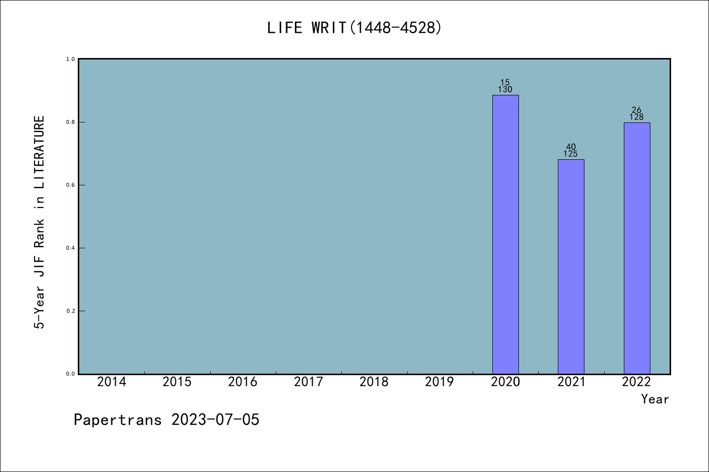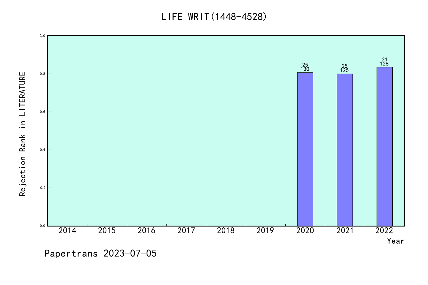 AHCI期刊Life Writing历年拒稿占比