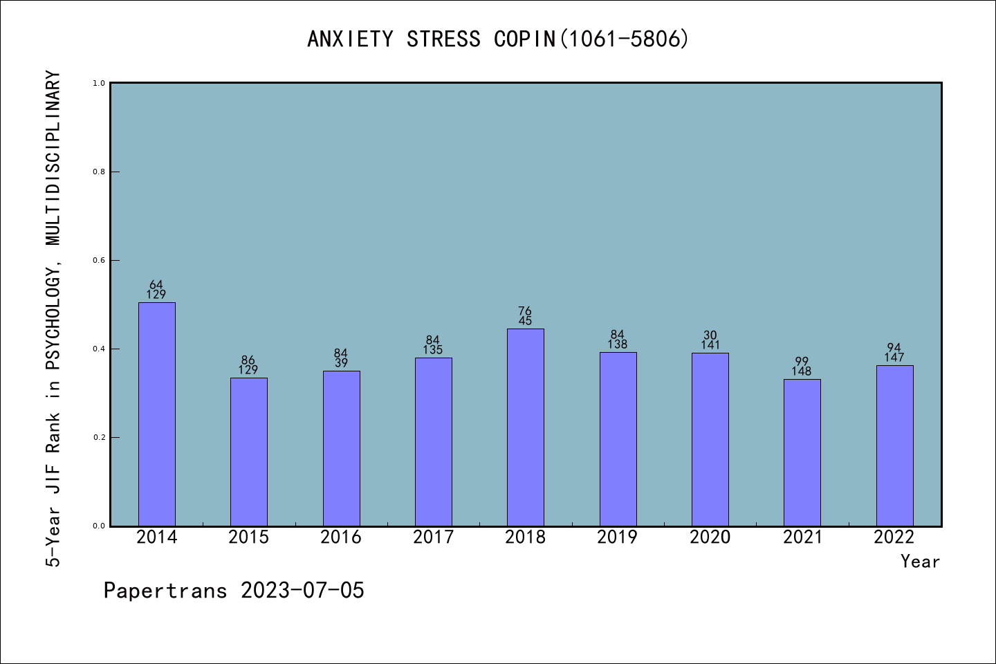 ANXIETY STRESS COPIN图表质量排名@SSCI心理学,多学科