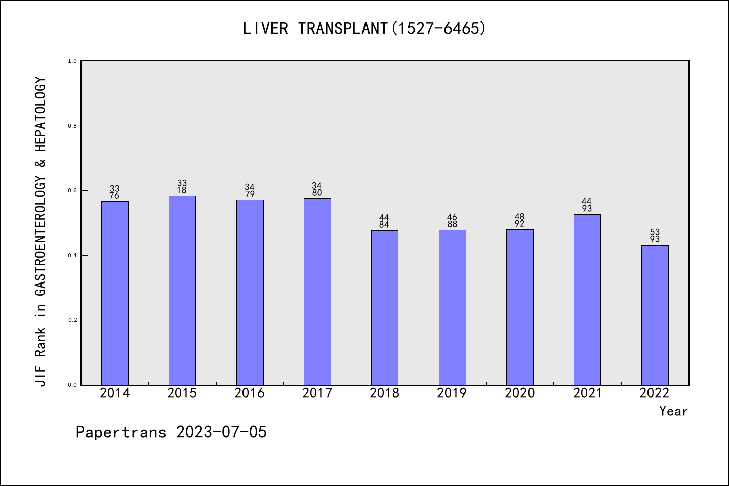 LIVER TRANSPLANT图表质量排名@SCIE胃肠病学与肝病学