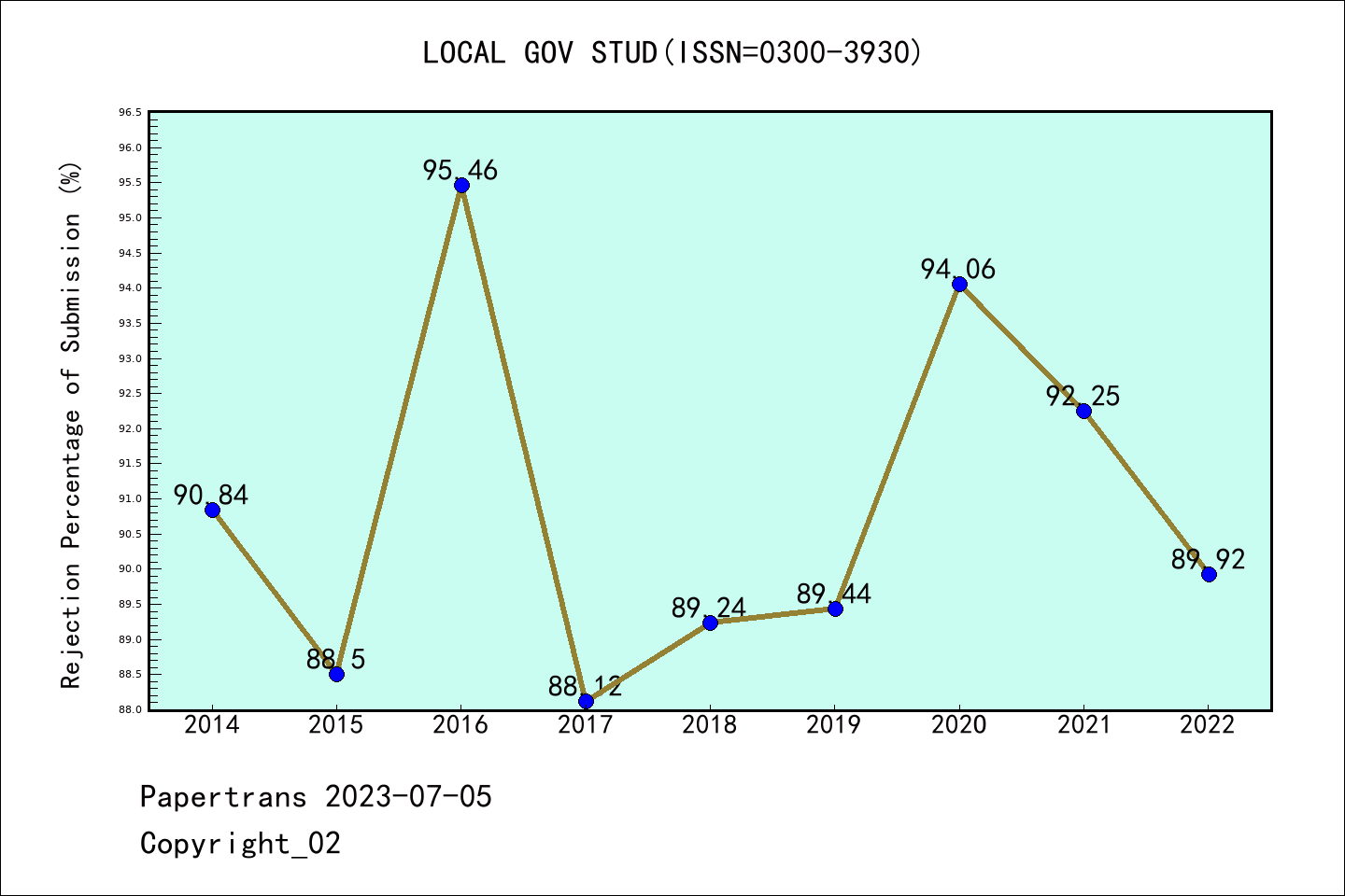 SSCI期刊LOCAL GOVERNMENT STUDIES历年拒稿占比