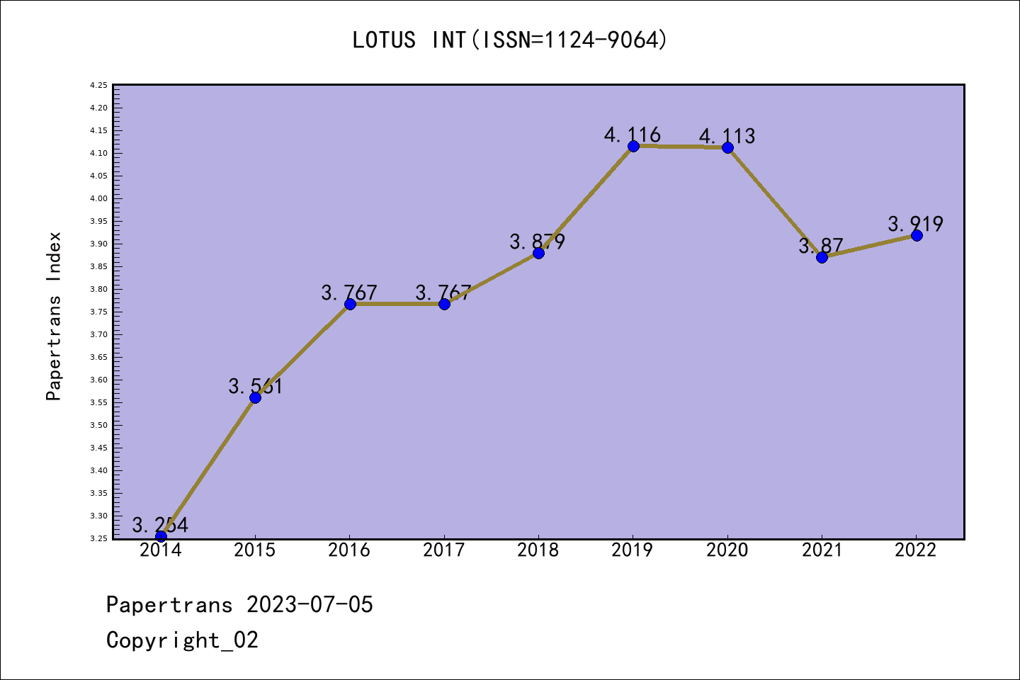 AHCI期刊LOTUS INTERNATIONAL历年派博系数(Pindex)