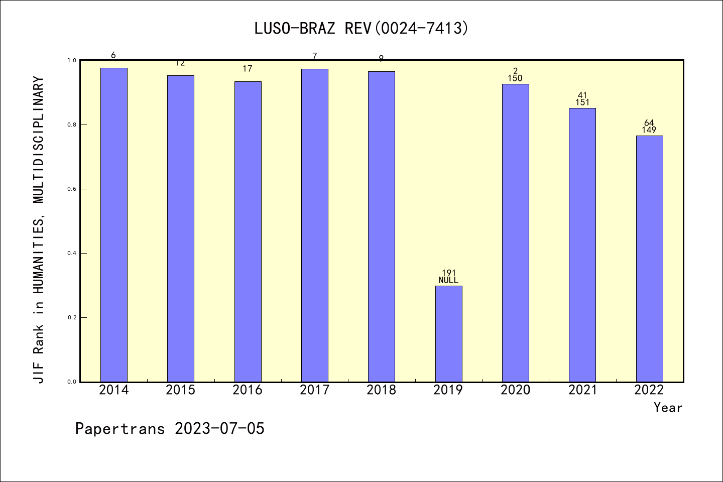 | LUSO-BRAZ REV图表质量排名@AHCI人文学科