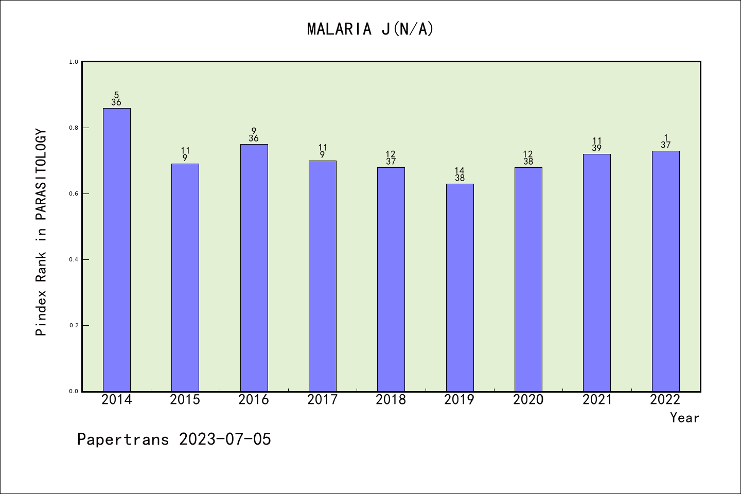 MALARIA JOURNAL派博系数(Pindex)学科排名@SCIE寄生虫学