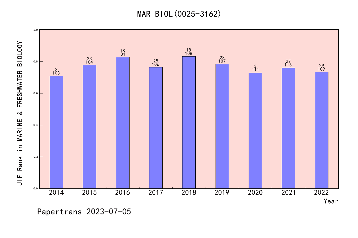 MAR BIOL图表质量排名@SCIE海洋与淡水生物学