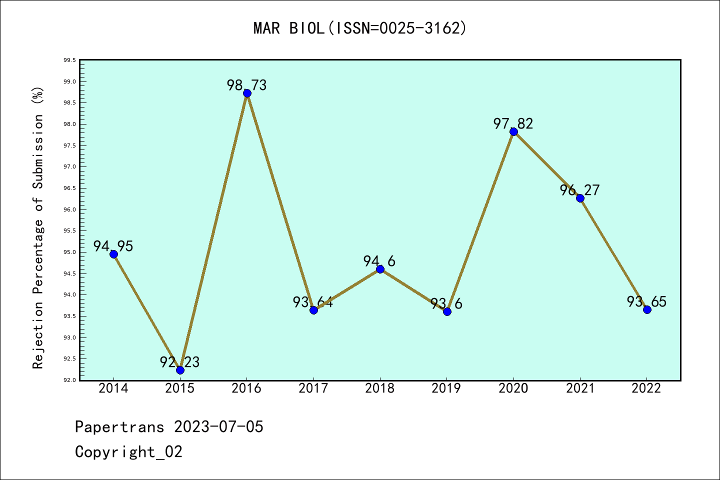 SCIE期刊MARINE BIOLOGY历年拒稿占比