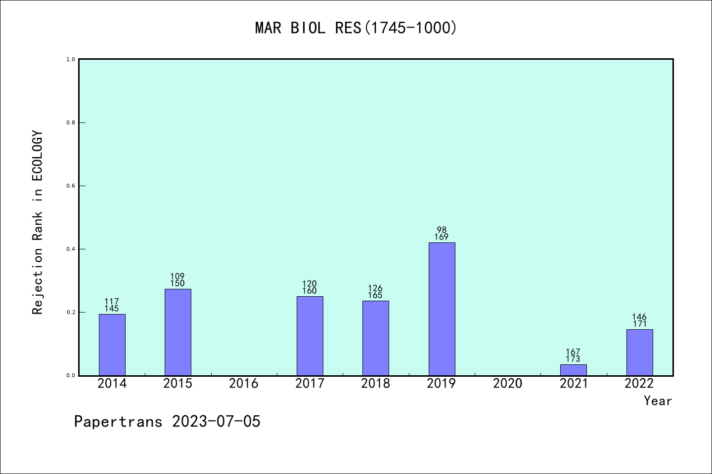 Marine Biology Research拒稿率学科排名@SCIE生态学
