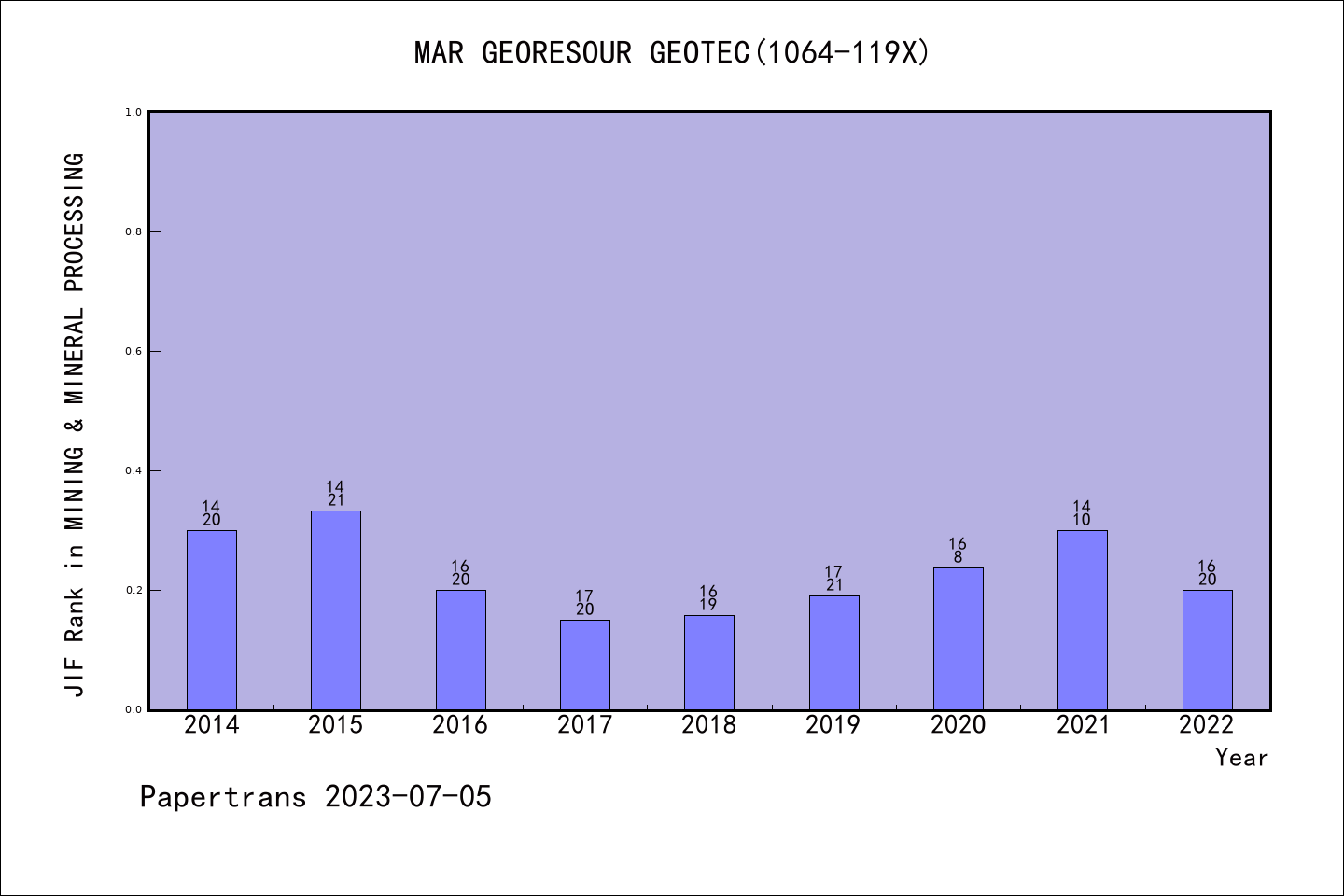 MAR GEORESOUR GEOTEC图表质量排名@SCIE采矿和矿物加工