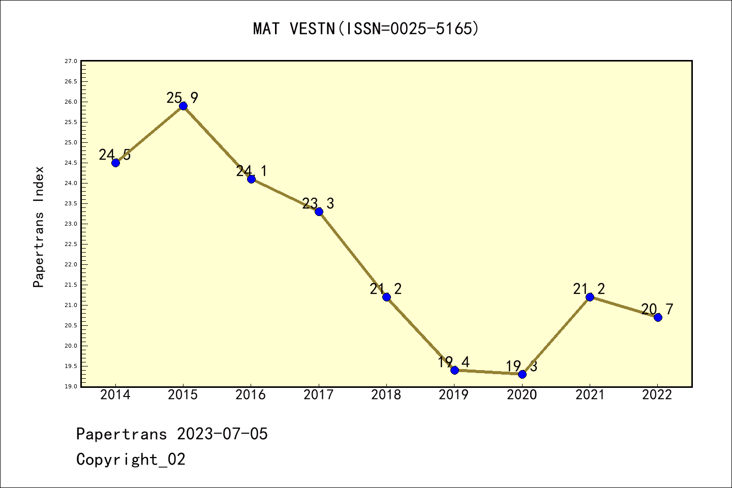 ESCI期刊Matematicki Vesnik历年派博系数(Pindex)