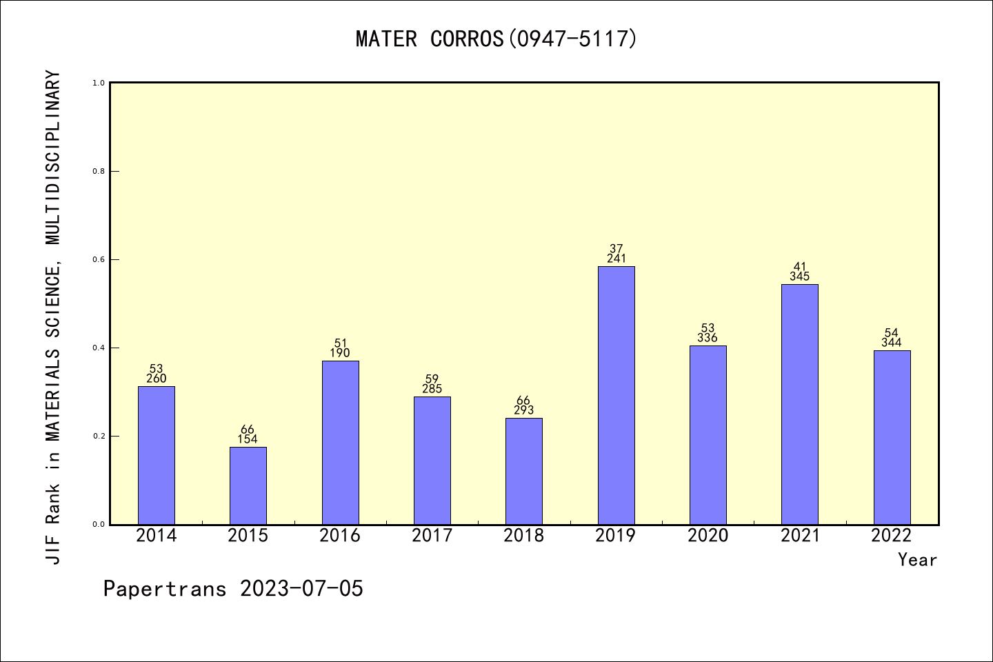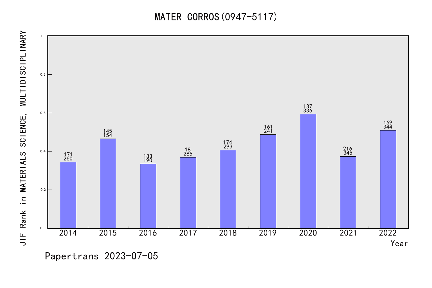 MATER CORROS图表质量排名@SCIE材料科学,多学科