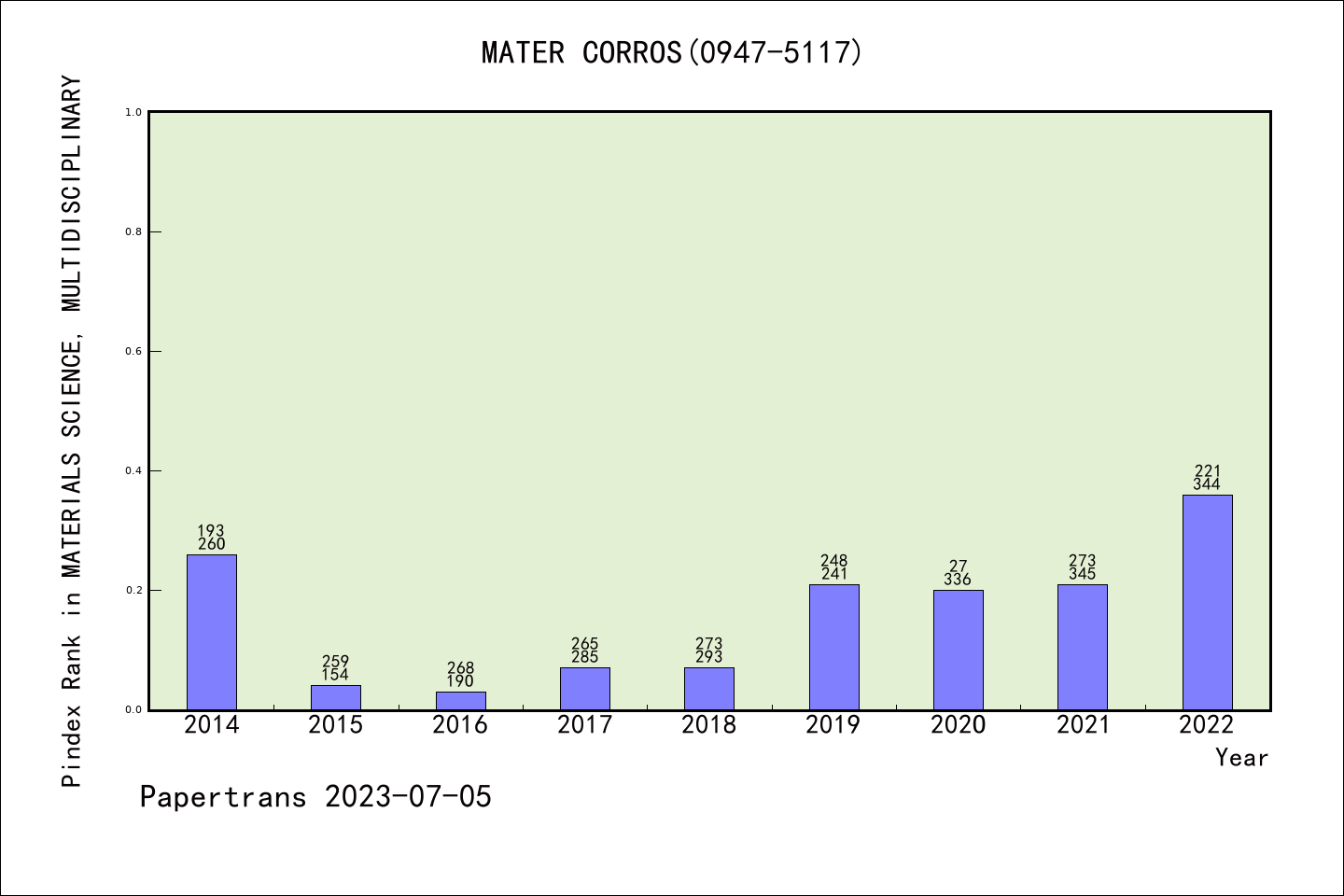 SCIE期刊MATERIALS AND CORROSION-WERKSTOFFE UND KORROSION历年派博系数(Pindex)