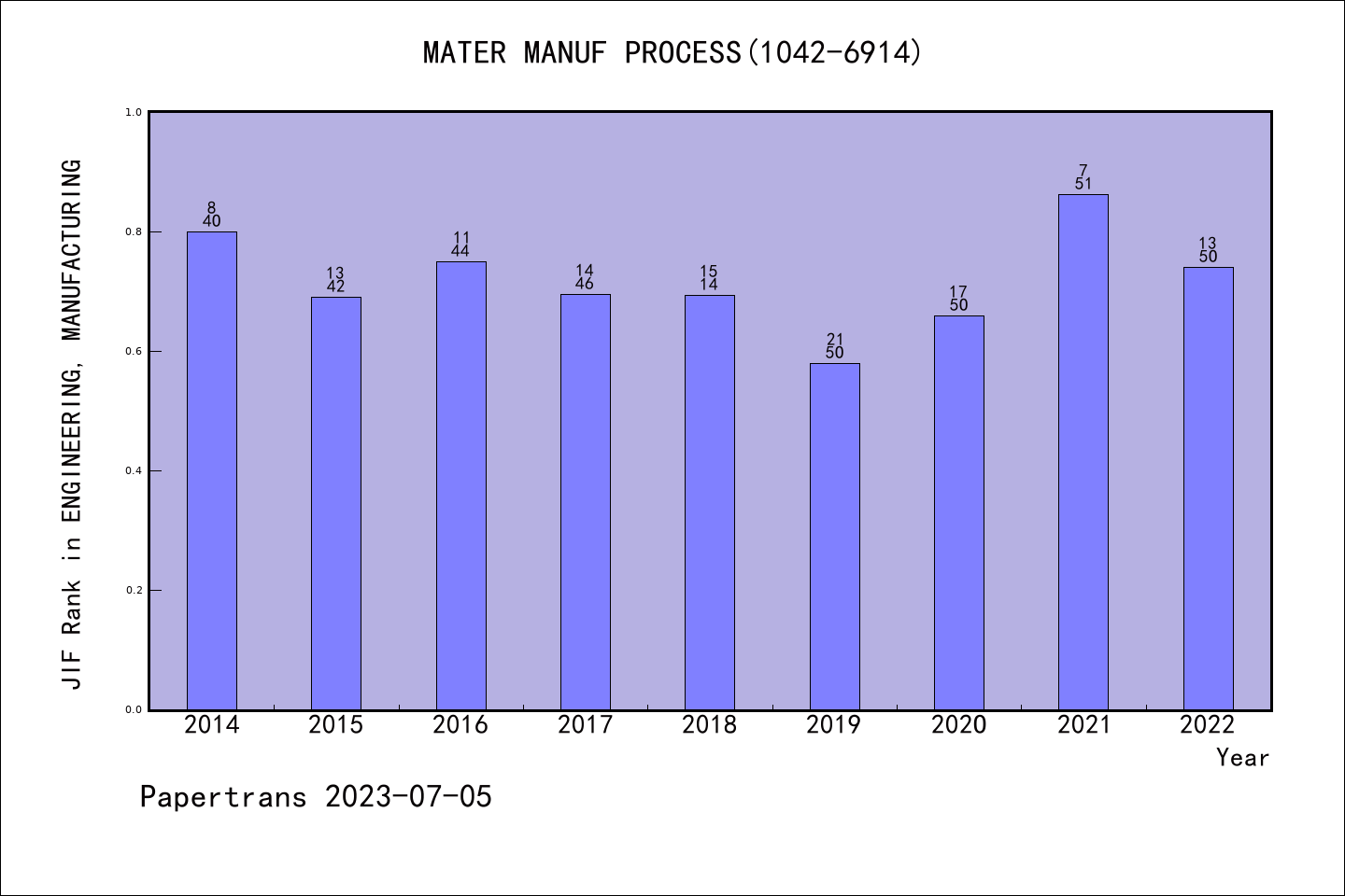 MATER MANUF PROCESS图表质量排名@SCIE工程、制造